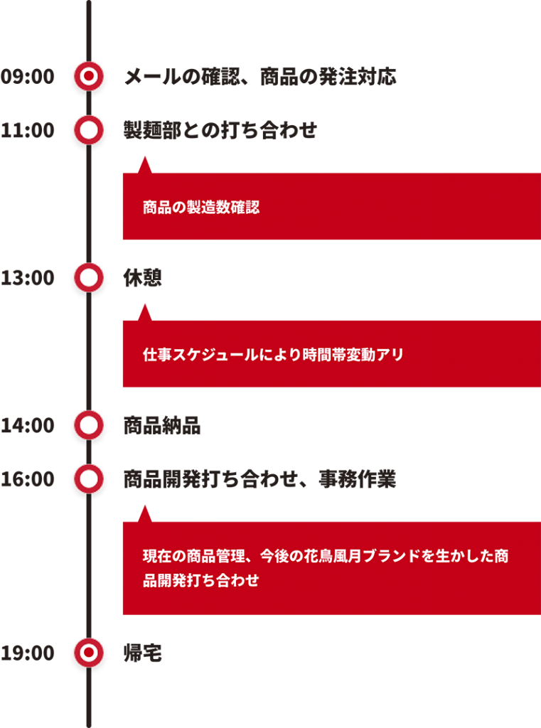 花鳥風月のブランドを生かした商品の開発、管理、販路開拓をする部署です。